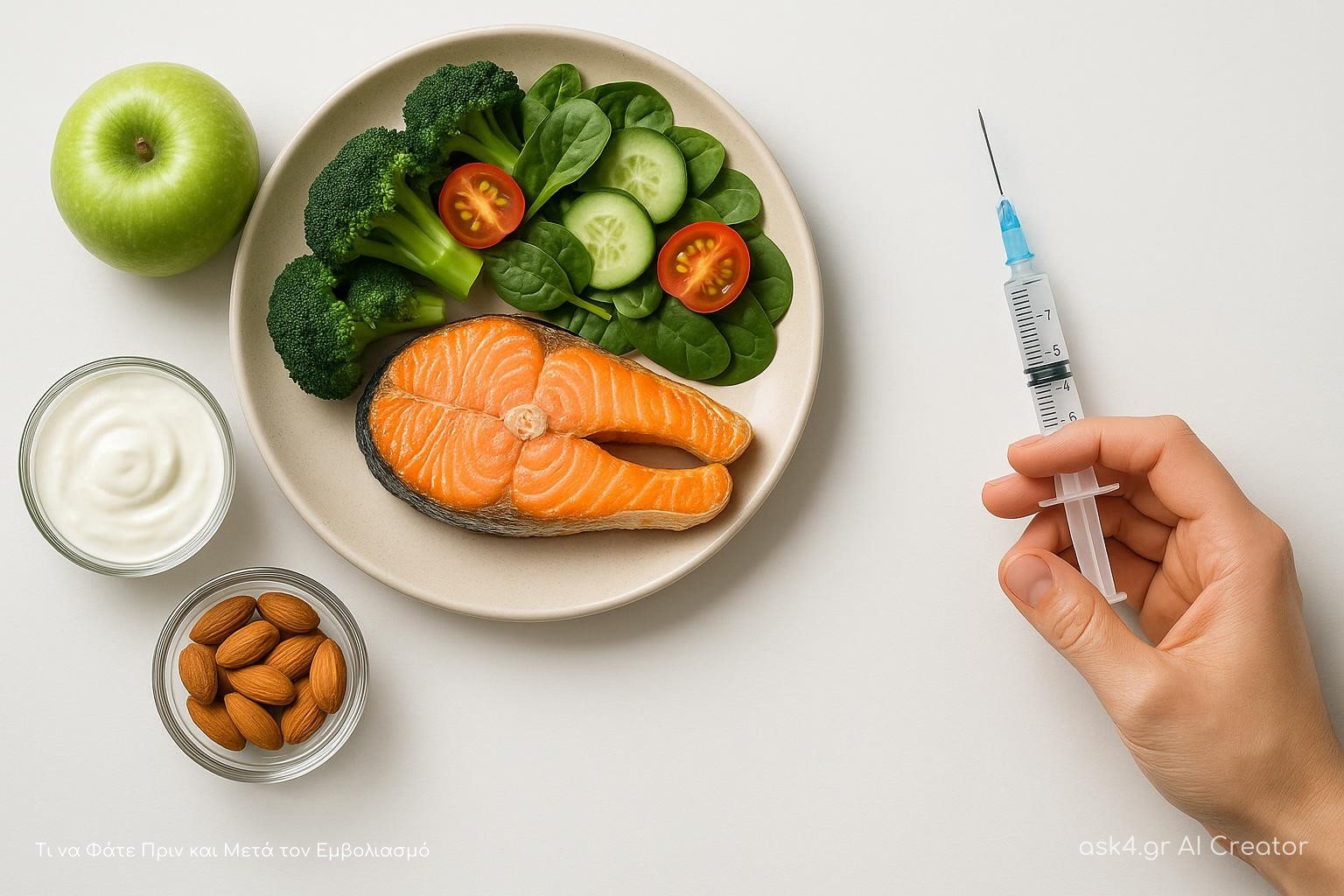 Μετά τον εμβολιασμό, συνεχίστε να πίνετε αρκετό νερό και προσθέστε προβιοτικά και πρεβιοτικά στη διατροφή σας. Τροφές όπως γιαούρτι, κεφίρ και ζυμωμένα προϊόντα μπορούν να βοηθήσουν στην ενίσχυση του ανοσοποιητικού σας.